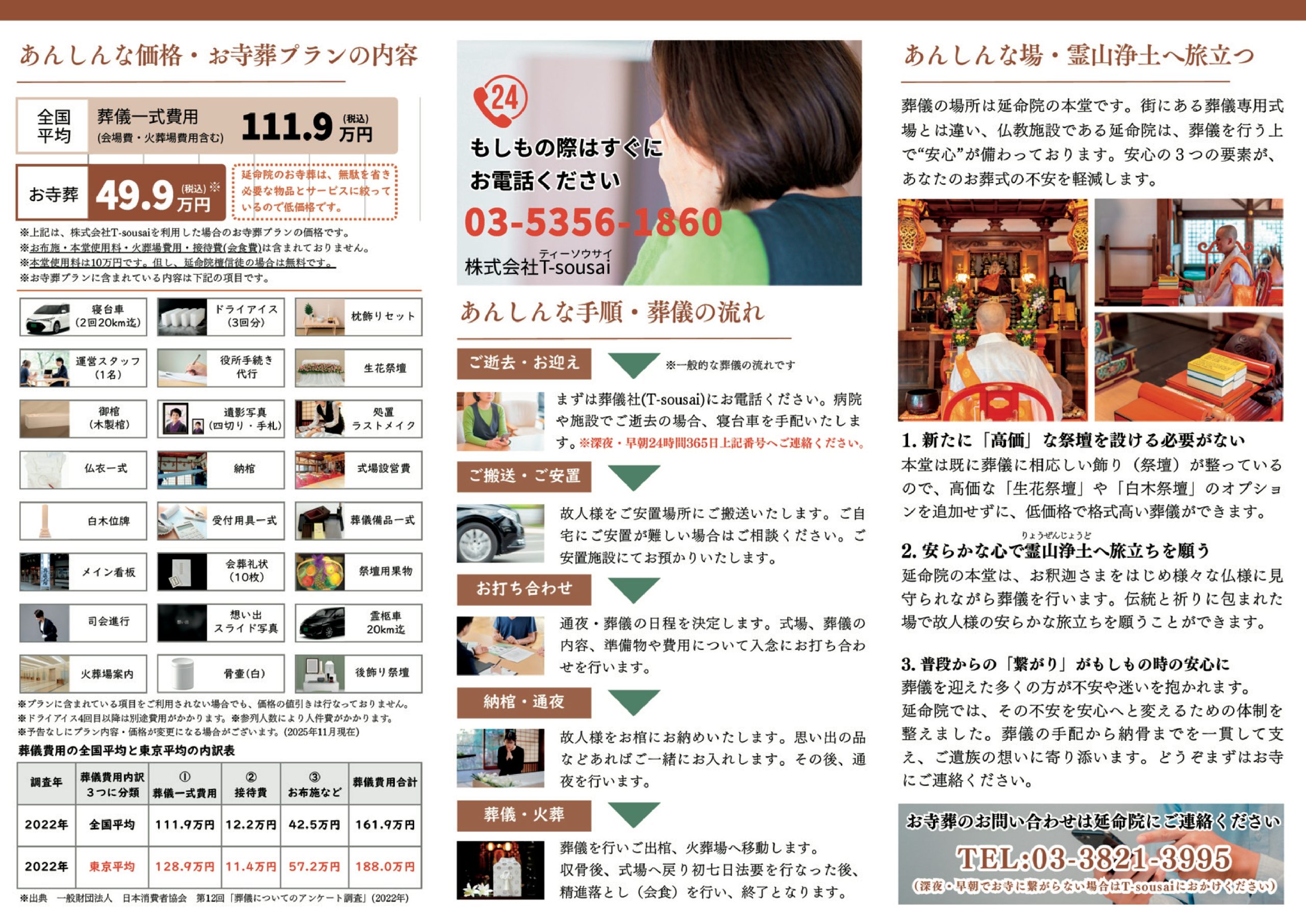 延命院のお寺葬は、「あんしんな価格」「あんしんな手順」「あんしんな場」の3つの安心をお約束します。